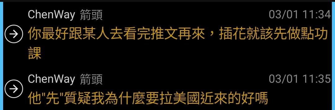 → ChenWay : A大那個我早就回答過了,你看不到或者選擇性無視你 03/02 03:33