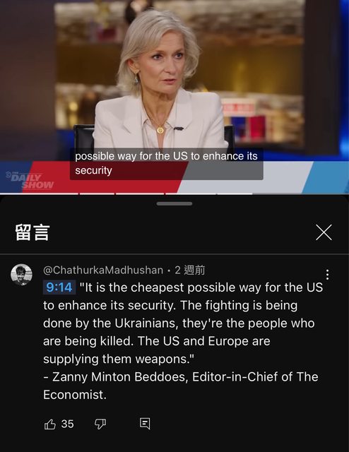 → edalmond : 其實烏克蘭繼續打是讓歐洲更安全而不是美國,所以 03/01 14:08
