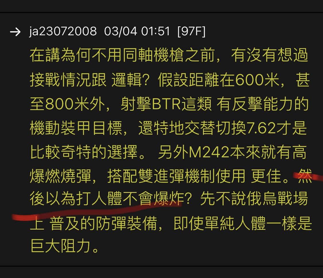 推 h80733 : 我前面是質疑那些人真的是被25mm打到嗎?M2組員會 03/06 08:48
