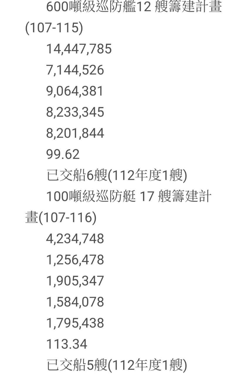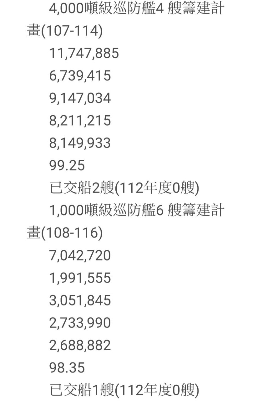推 chyx741021 : 海巡4艘4000噸(實際5000多噸)快造完了,接下來是 03/12 10:32