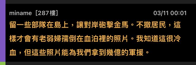 : 先不提是不是因為某幾個ID一直說的誰要金門人投票都親中,那只是大家嘴炮講講