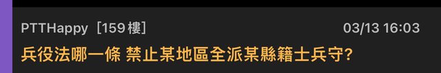 → PTTHappy : 政策上 國防部本即有權考量各層面(例如政戰面)裁量 03/13 18:23