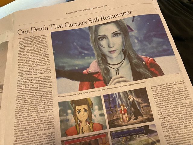 ・エアリスが好きで、死んで悲しかったけど同時にとても感動したから。ストーリーの