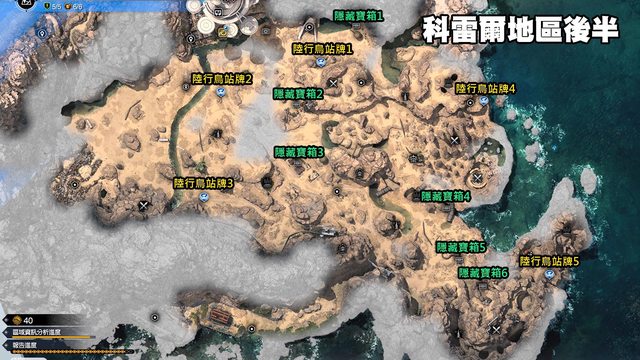 原野後半段地圖的陸行鳥站牌與隱藏寶箱位置如圖