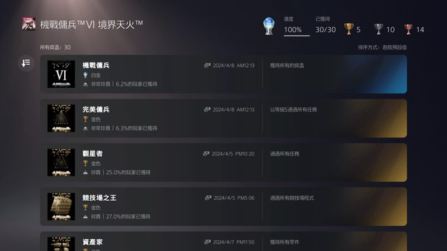 2.可能是因為AC6其他獎盃都很好拿的關係,