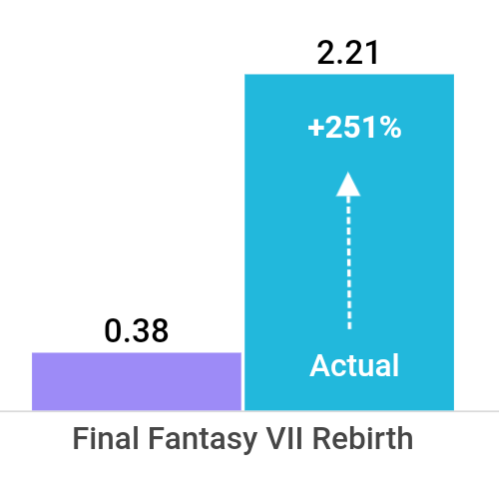 → kuku321: 際 FF7RB首日的DAU來看 劍星首發銷量上看400萬這樣 04/12 16:05