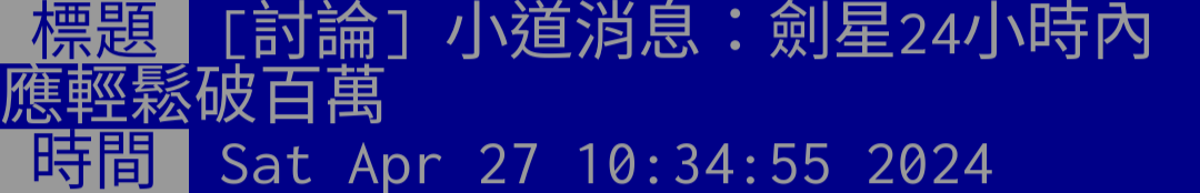 推 eyeter: 光兩個版3/26-4/26劍星的討論篇數就快近250篇 「討論」熱 05/21 10:56