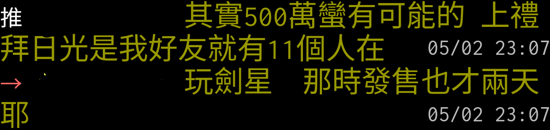 → NexusPrime: 我猜應該有賣破300萬套 05/22 14:03