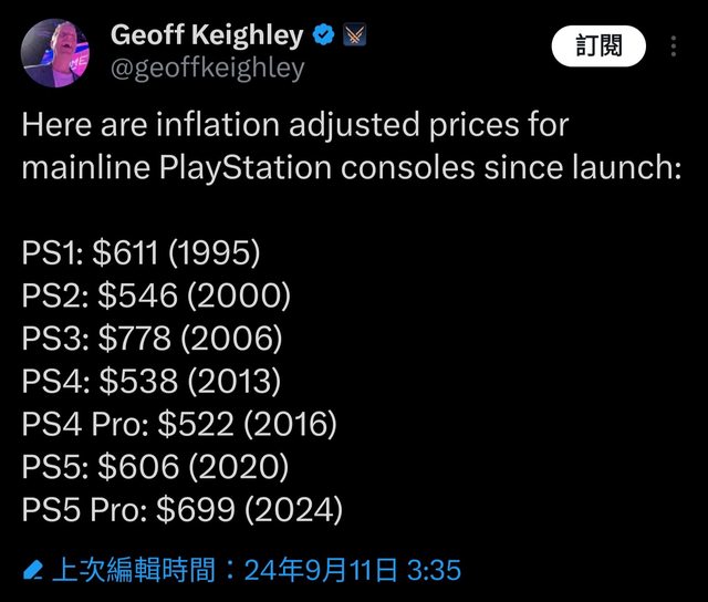 推 zzz50126: 這就加通膨啦 ps3是499變773 差不多吧 09/11 10:35