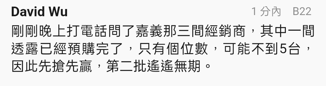→ nutienptt: 第二批遙遙無期..哈哈哈,待過電玩店的都知道正常至少 09/26 10:12