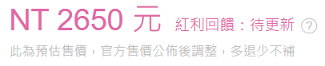 → lpdpCossette: 開預購時估價會先按高一點免得到時候賠錢09/29 07:27