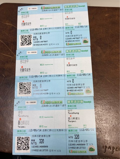 使用限制:上車地點僅限台北、台中,無使用期限,但連假不能搭乘。