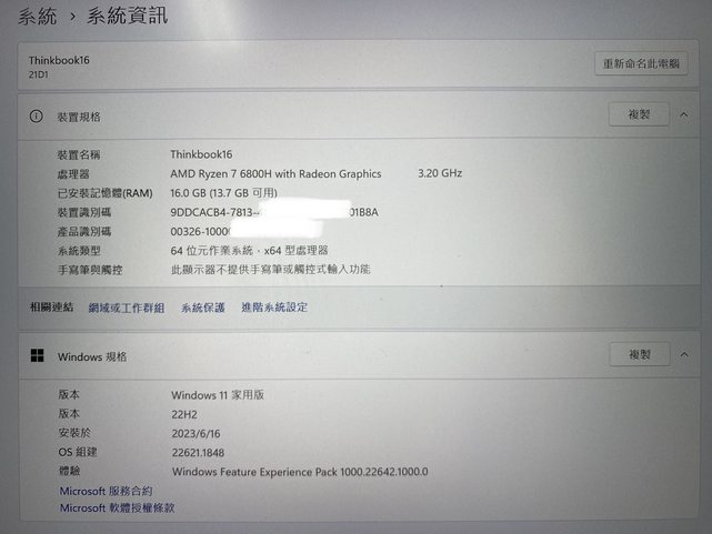 標題[交易]筆電 聯想ThinkBook16+ R7 6800H