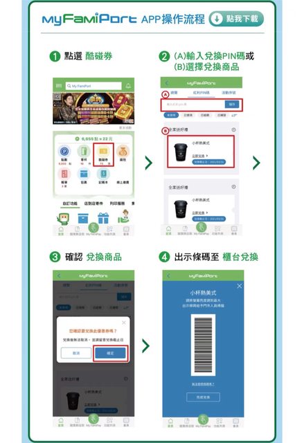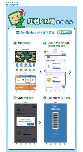 (2)FamiPort機台點選紅利->紅利PIN碼->輸入序號兌換。