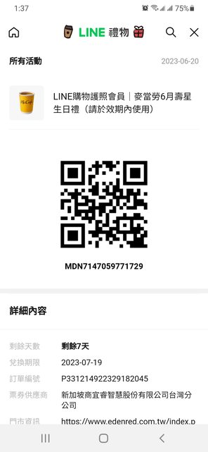 物品名稱:麥當勞 熱 中杯美式*1