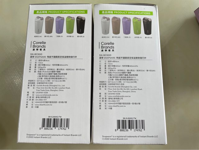 3.康寧陶瓷不鏽鋼真空保溫雙飲隨行杯(黑、白)各1個,1個200