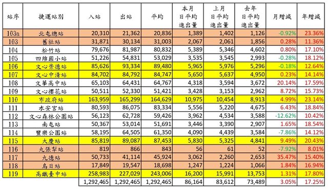 5、本文參考 Sunny821210、TaiwanXDman板友高雄捷運各站旅運量的發文格式。