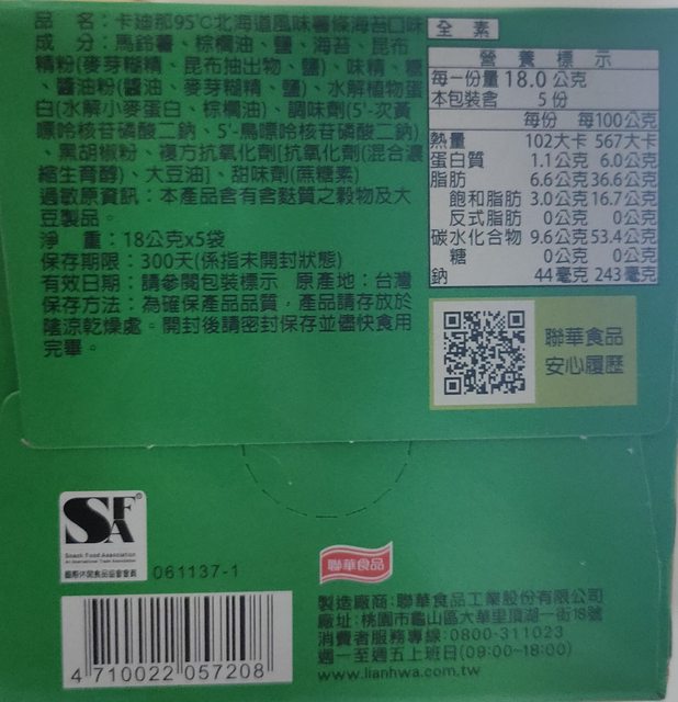 18. 小老闆海苔32克有27包(原味24,辣味3),一包售40元,有效期限2024/5/23