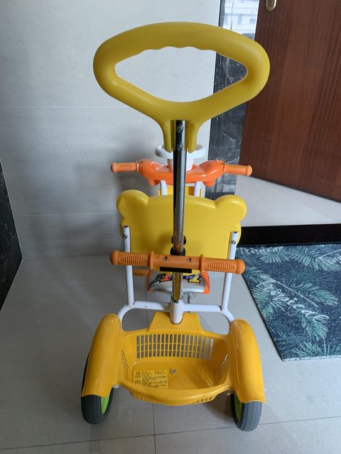 交易物品:二手幼兒三輪車,售100元。左踏板騎太快會掉,無法固定,幼童只能慢慢騎,