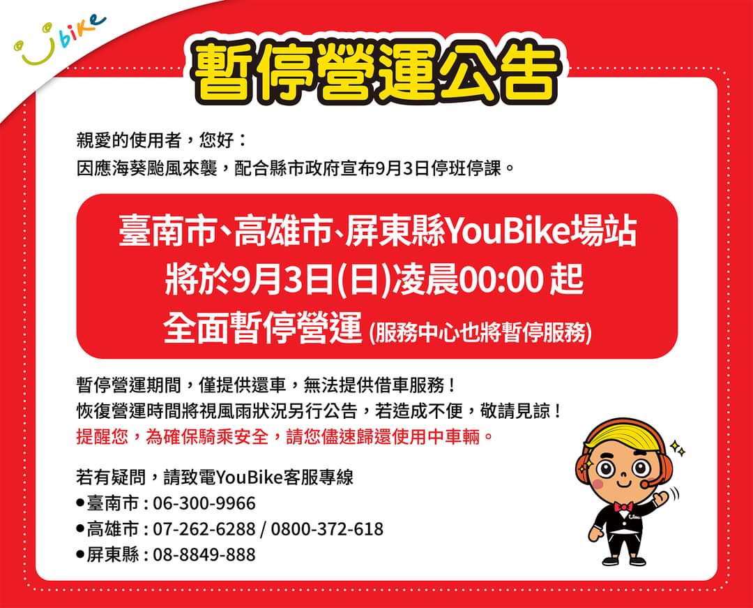 推 younging: 台北也是,停班課Ubike暫停服務 09/03 09:51