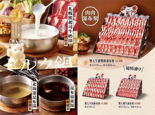 我們今天選擇了鴛鴦鍋,第一種湯底就是札幌熊起司牛奶鍋,需要額外+69才能點;另一