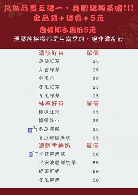 即日起至10/1,凡住在安平區則享有純茶每杯20元,鮮奶系列每杯40元~~~地區限定