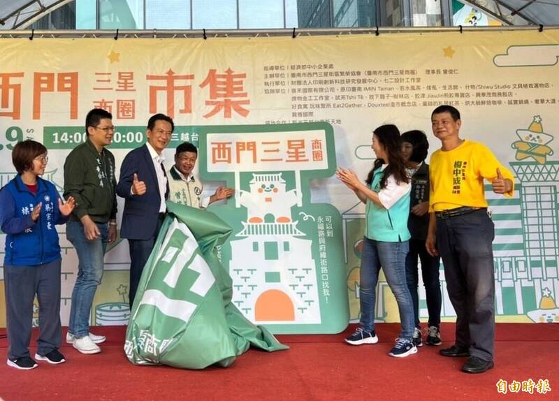 台南西門三星商圈今天舉辦商圈揭幕暨市集活動,由小西門里長曾俊仁(左4)擔任商圈