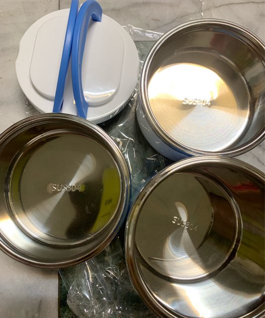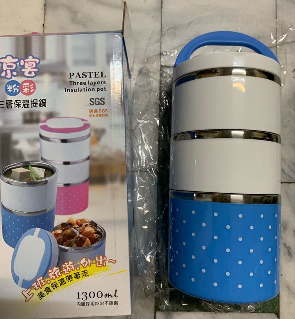 3. 京宴三層藍色保溫304不鏽鋼提鍋1300ml,全新只拆開拍照,售180元