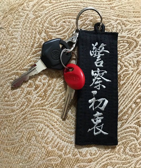 兩把鑰匙,掛著「警察初衷」吊飾牌牌