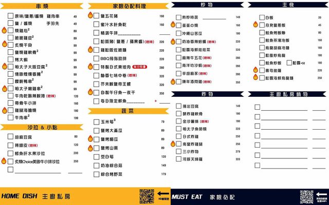 以及蔬菜類的選項;而在「家根必配」這一項目,包括了炒菜、主食、炸物和主廚私房鍋