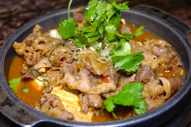 底部鋪滿了豆腐,醬汁口味濃郁,也非常適合搭配白飯一起吃。