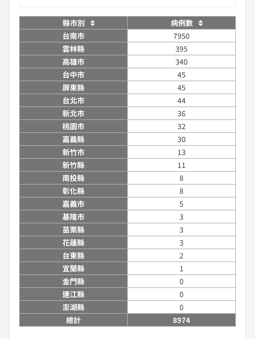 → wennai: 高雄340例,台南卻已經7950例了,去你的西瓜 09/21 00:05