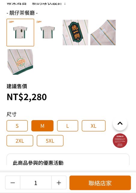 標題[交易] 售統一傑尼獅港式主題球衣一件