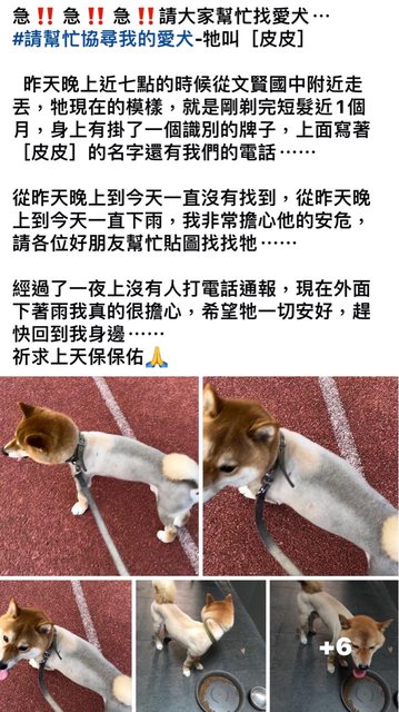 標題[失蹤] 文賢國中附近柴犬走失