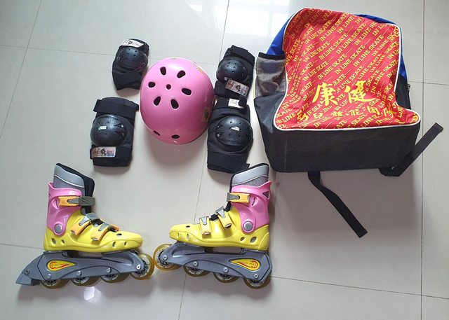 標題[交易] 二手兒童直排輪溜冰鞋含護具背包