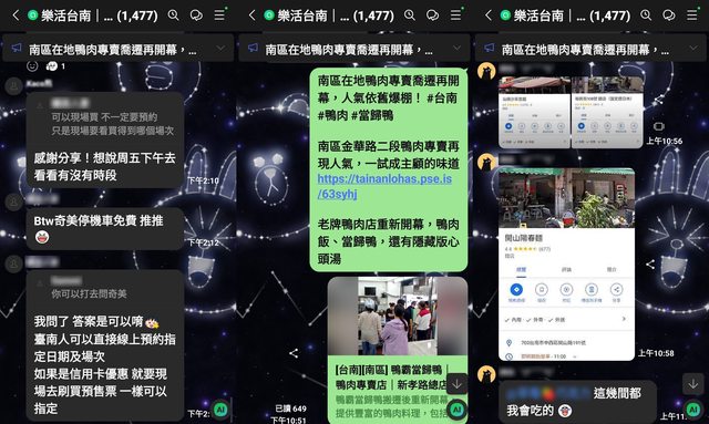 LINE社群比較像即時聊天室,只要有關台南的發問,八成都能得到解答。