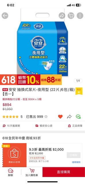 安安抽換式尿片-夜用型22片/$140/家人買太多便宜出售;