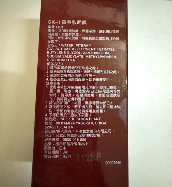 商品名稱:SK2青春敷面膜(百貨滿額贈)、便宜售出