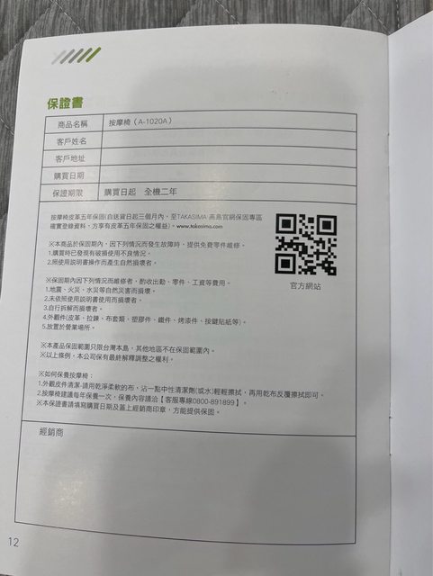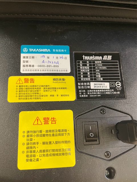 標題[出售] TAKASHIMA 高島 A-1020A按摩椅(2年