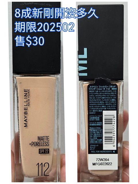 fit me 112粉底液 用過五次內 $30