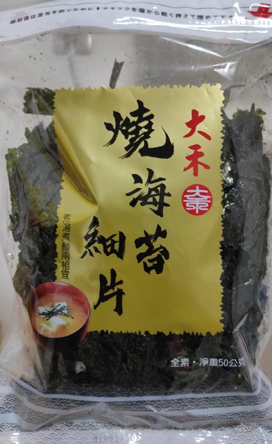 18. 台灣大禾燒海苔細片50克有7包,一包60元,7包400元,有效期限2024/9/1