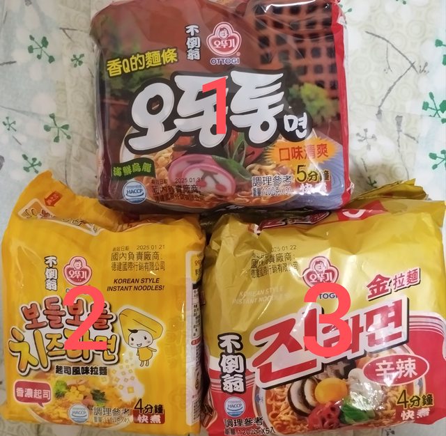 7.韓國泡麵1號4袋,2號6袋,3號1袋,一袋都100元,有效期限2025/1/21