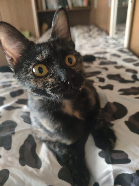 後來發現小玳瑁不是不親貓,是我們家原本的母貓太兇了她會害怕。