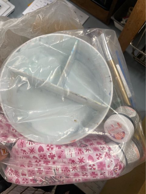 1.水彩用具(包含水彩筆、水盆)、八成新水彩顏料、白色廣告顏料*2