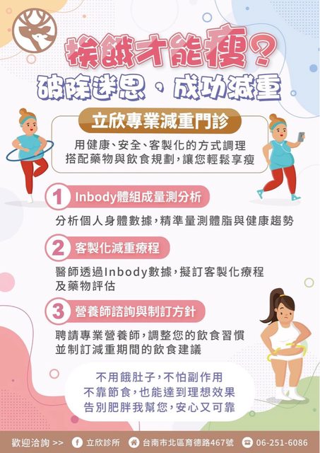 『立欣診所』提供不同的減重方案以及最完整的營養師衛教,讓您輕鬆瘦一夏!
