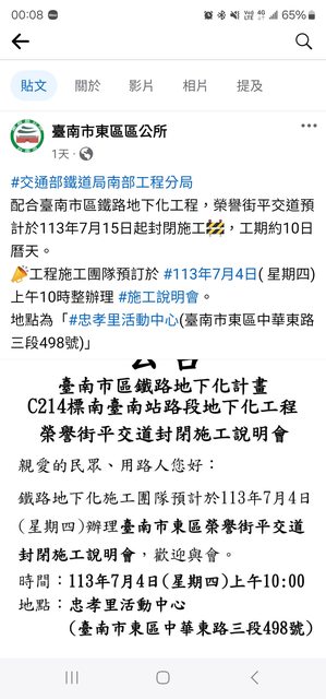 訊息來源:台南市東區區公所FB