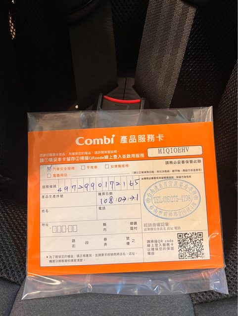 座椅購於台南大遠百專櫃,附有保證卡跟說明書。汽車座椅很少使用,狀況良好,已經拆