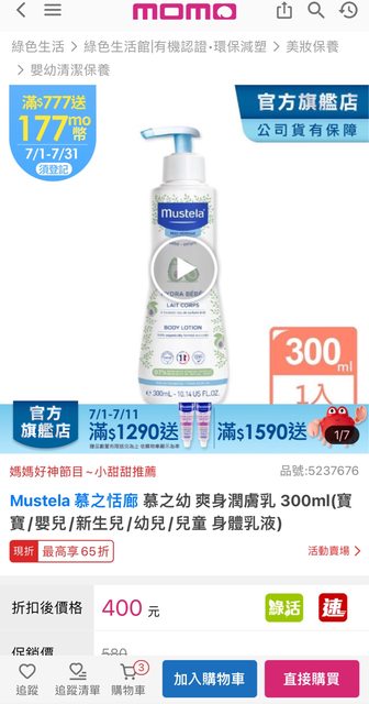 慕之恬廊爽身潤膚乳300ml共有兩罐,期限到明年三月,之前官網買組合一次屯六罐,用