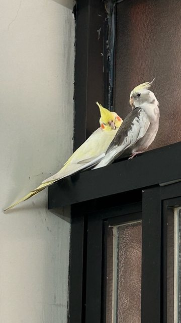 特徵:白臉派特(羽色以灰白為主)沒有腮紅。沒有上腳環,翅膀有明顯剪過的痕跡。會