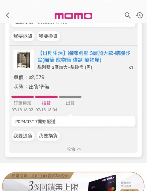 今天已經下訂單